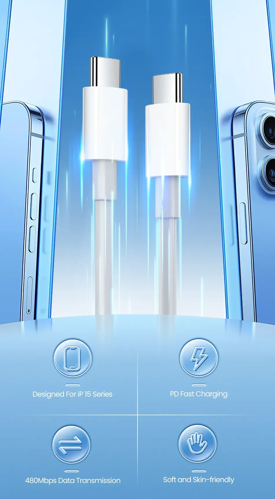 Function 3: Type C to Type C Cable for iPhone 15 Plus